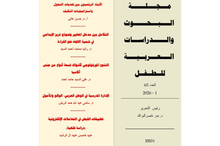الإصدار رقم 64 من مجلة الأبحاث والدراسات العربية ، تاريخ النشر: 1 يناير 2026م. يحتوي الإصدار على 5 بحوث مقبولة للنشر في مختلف التخصصات، كما أن الإصدار قد تناول العديد… اقرأ المزيد »الإصدار رقم 65