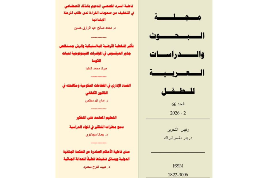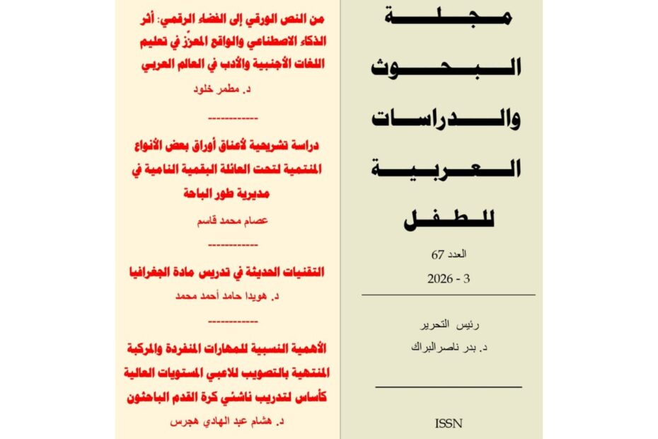 الإصدار رقم 66 من مجلة الأبحاث والدراسات العربية ، تاريخ النشر: 1 فبراير 2026م. يحتوي الإصدار على 5 بحوث مقبولة للنشر في مختلف التخصصات، كما أن الإصدار قد تناول العديد… اقرأ المزيد »الإصدار رقم 66